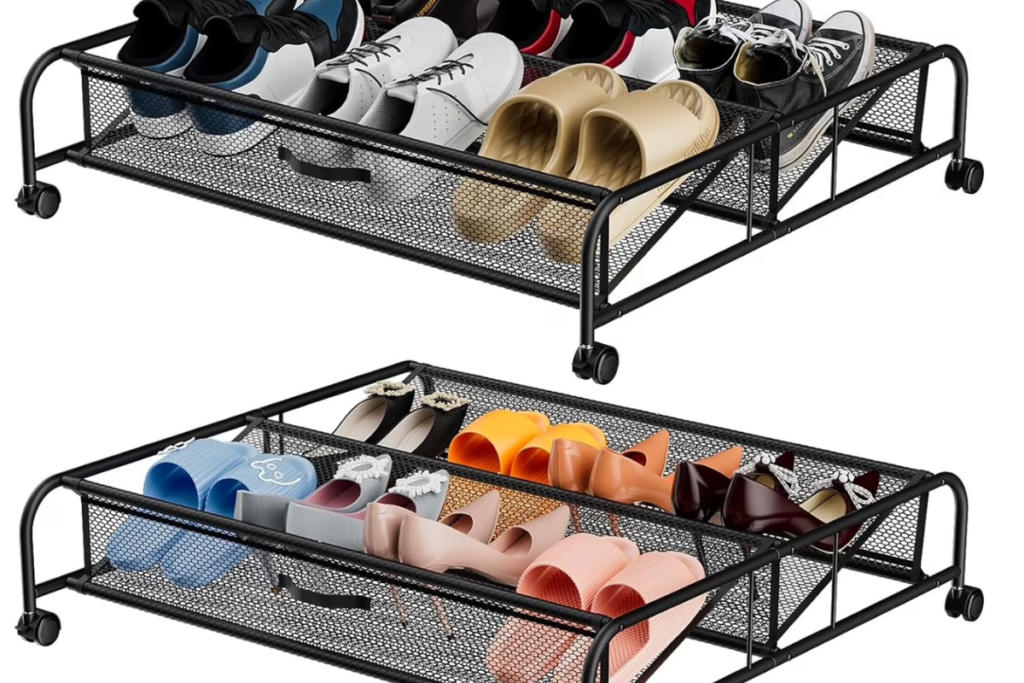 - Clear Bins: Use long, shallow plastic bins with wheels. Opt for clear containers so you can easily see what’s inside without digging through everything.