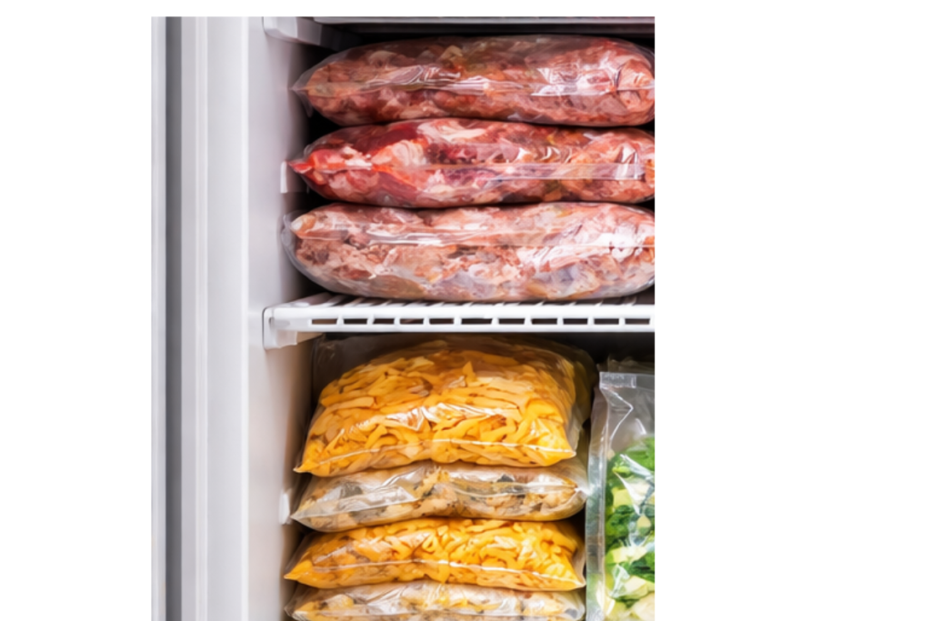 - The Result: Once frozen, these “bricks” of food can be stacked vertically like books on a shelf. This “filing cabinet” method allows you to see every meal at a glance and saves about 50% more space.
