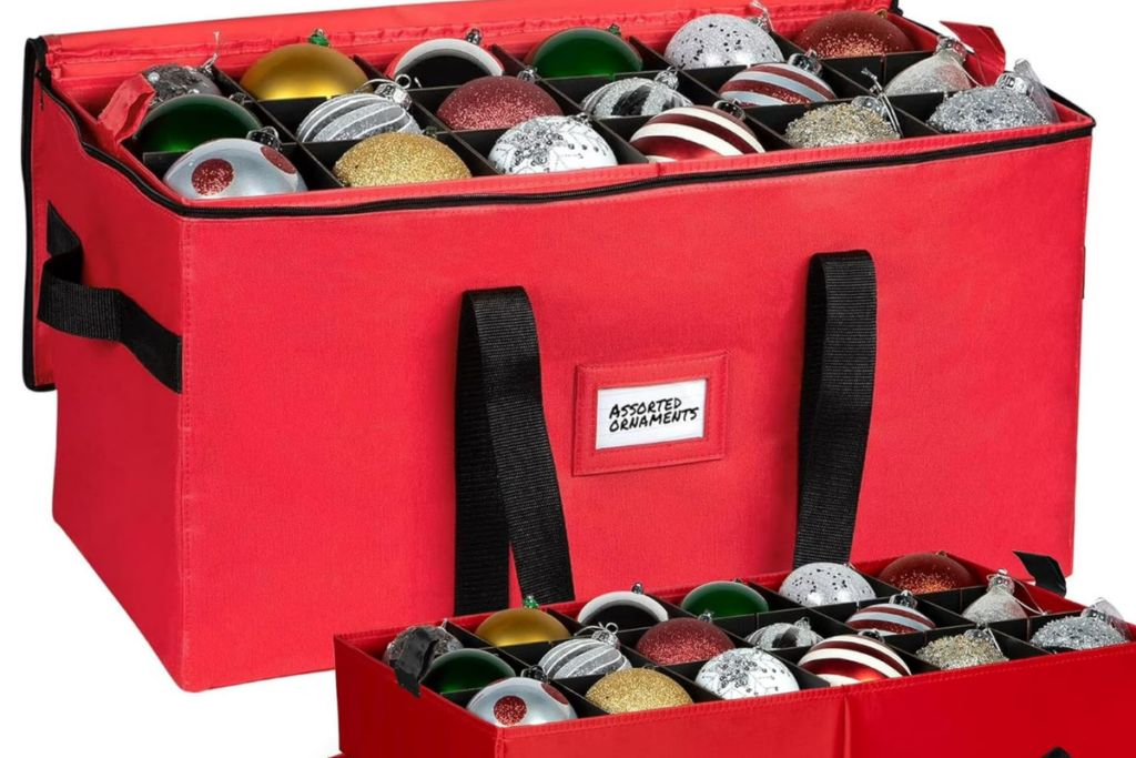 Grab a Mainstays 64-Count Ornament Storage Box. It has cardboard dividers that keep each bauble in its own little “apartment.” It’s lightweight, stackable, and fits perfectly on a closet shelf. Plus, the zip-up top keeps the dust out so you don’t have to wipe down every single ball next year.