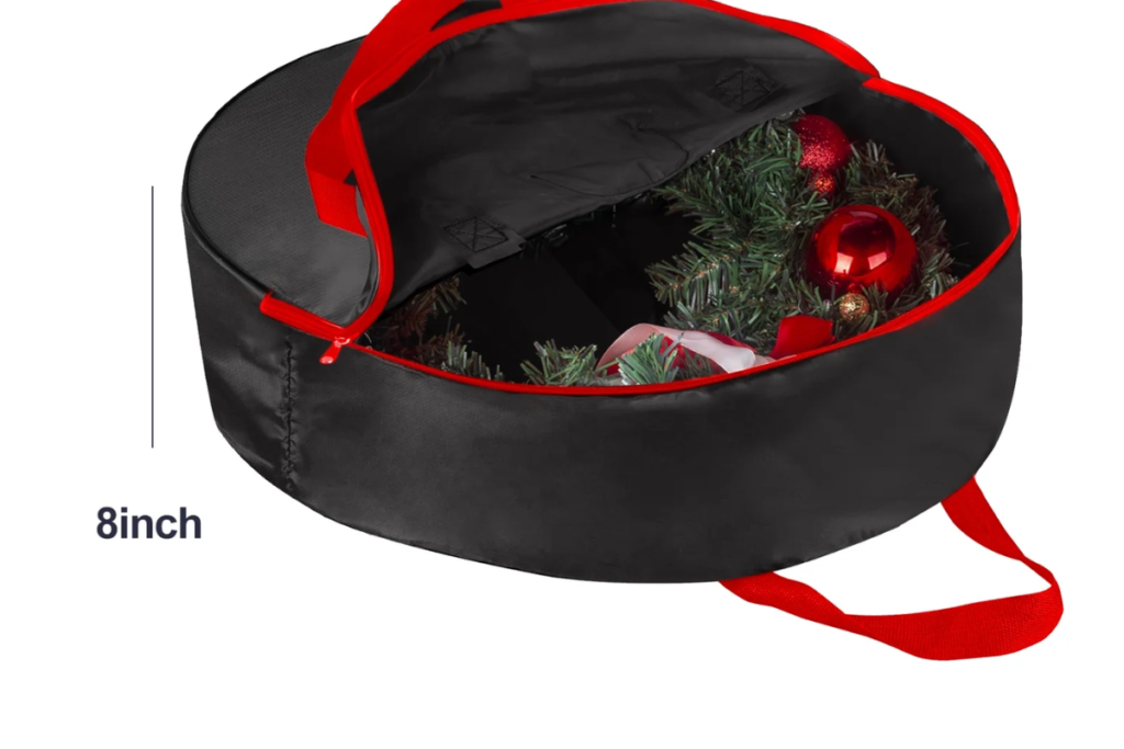 The Sterilite 24-Inch Wreath Box is a total game-changer. It’s a hard plastic shell that latches shut, keeping your wreath fluffy and dust-free. It even has a built-in handle so you can hang it from a hook in the garage or attic to save floor space.