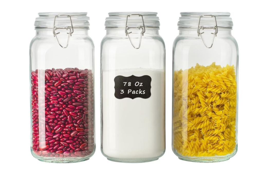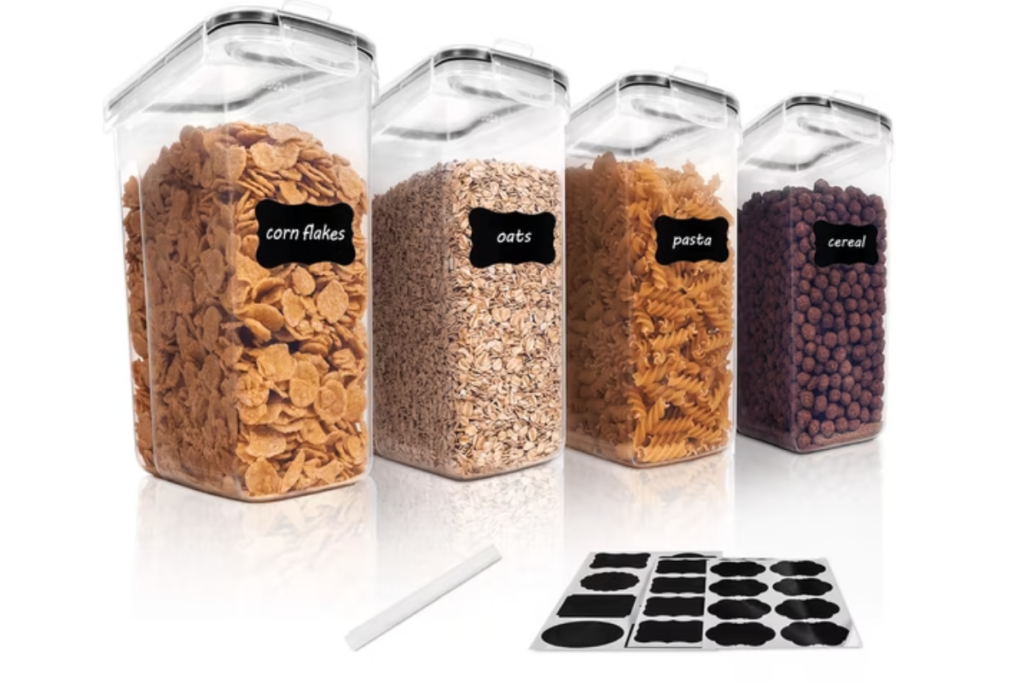 - Airtight containers for flour, sugar, rice, and cereal