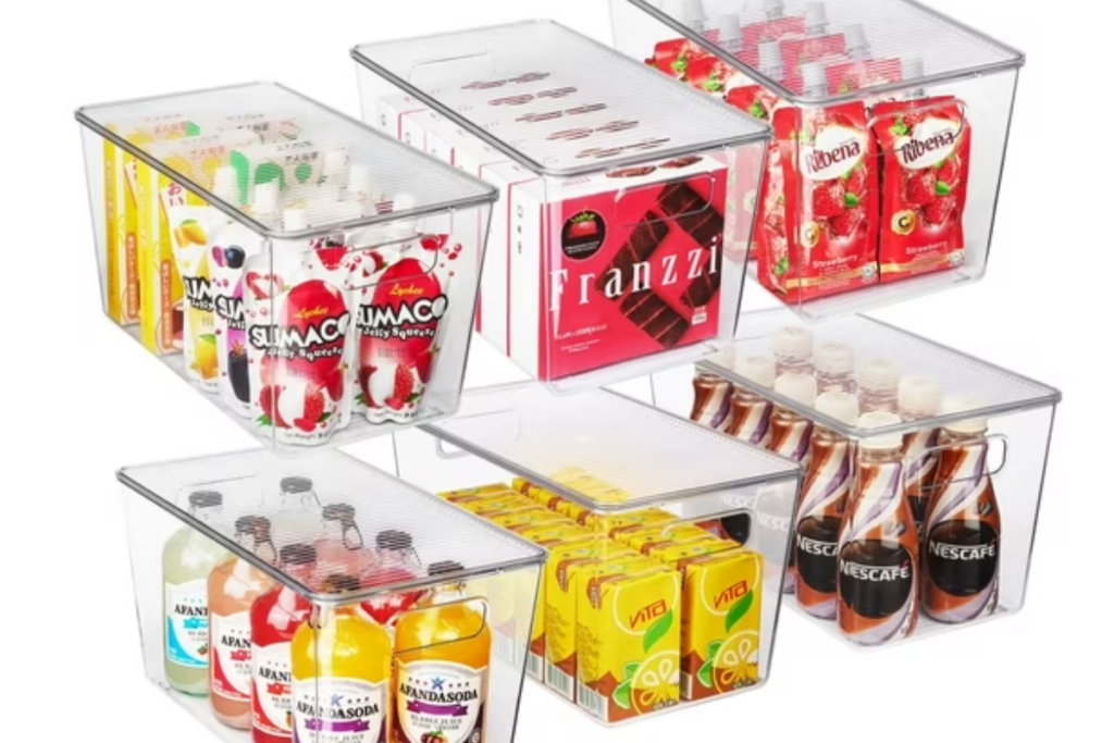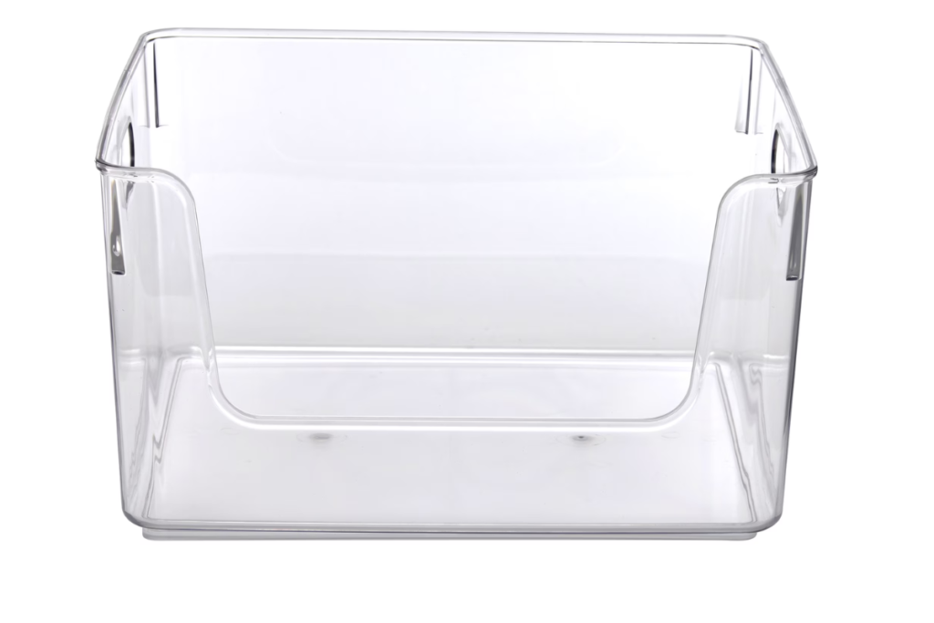 - Clear bins so you can see contents at a glance